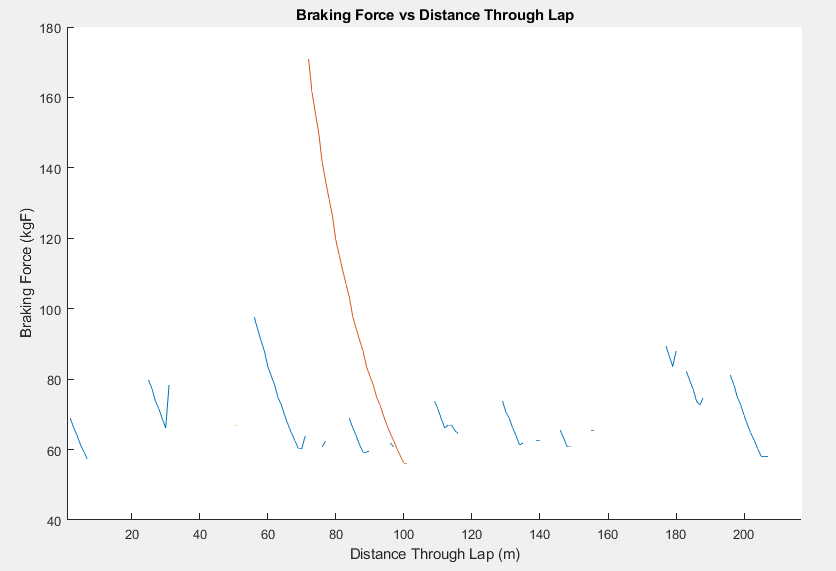 Starts from the vehicle velocity and then works backwards to calculate the force on the driver's foot. Uses the parameters taken from the Vehicle Profile file, calculates the maximum deceleration from the GGV, then calculates the forces on the car, then the brakes, then uses the hydraulic line parameters, and finally uses the length of the brake pedal to calculate the amount of force the driver needs to input to brake. Has no effect on laptime.